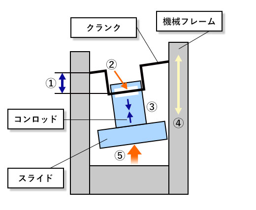 一般のクランクプレスは 5 つの機械的要因によって下死点の誤差が決定されます。